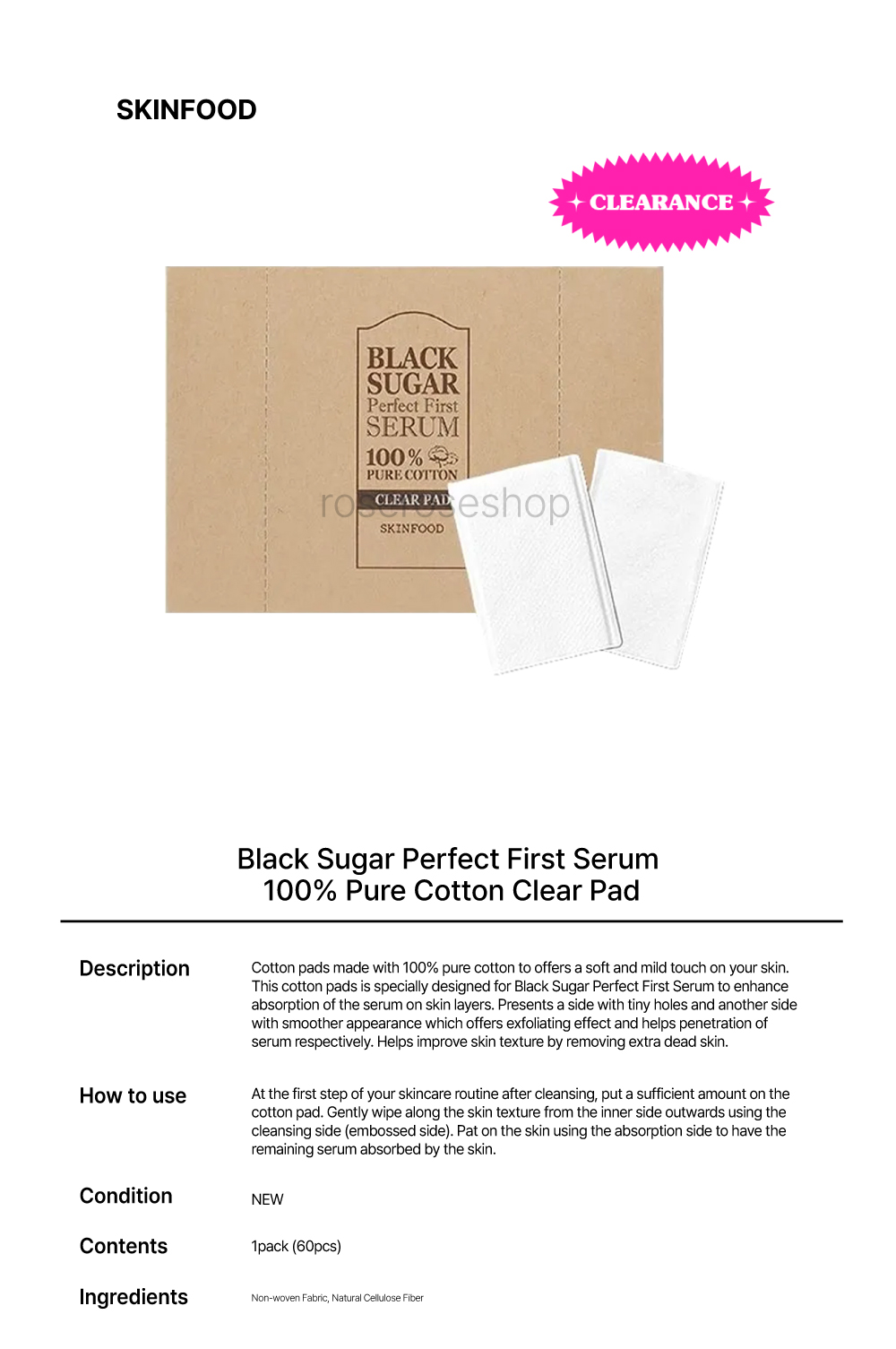 [SKINFOOD] Black Sugar Perfect First Serum 100% Pure Cotton Clear Pad - 1pack (60pcs)