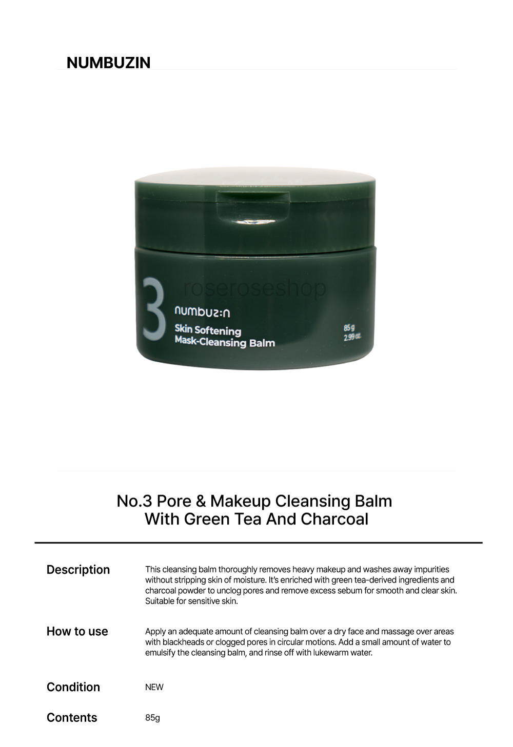 [NUMBUZIN] No.3 Pore & Makeup Cleansing Balm With Green Tea And Charcoal - 85g