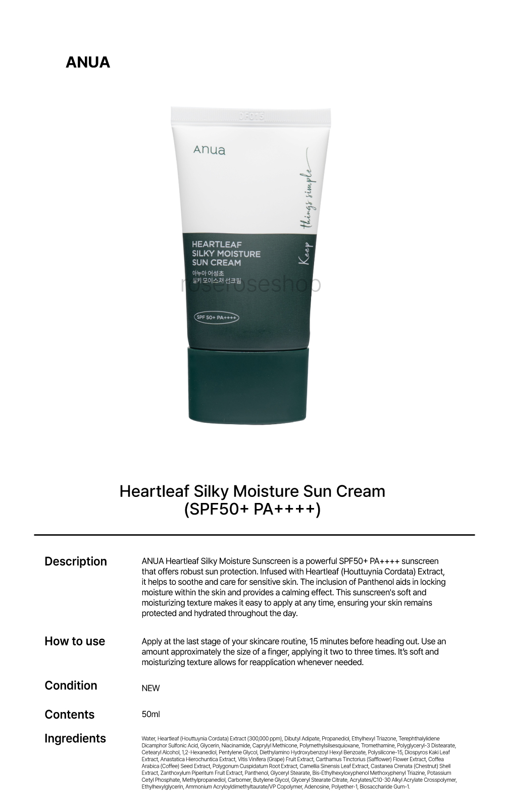 [ANUA] Heartleaf Silky Moisture Sun Cream (SPF50+ PA++++) - 50ml