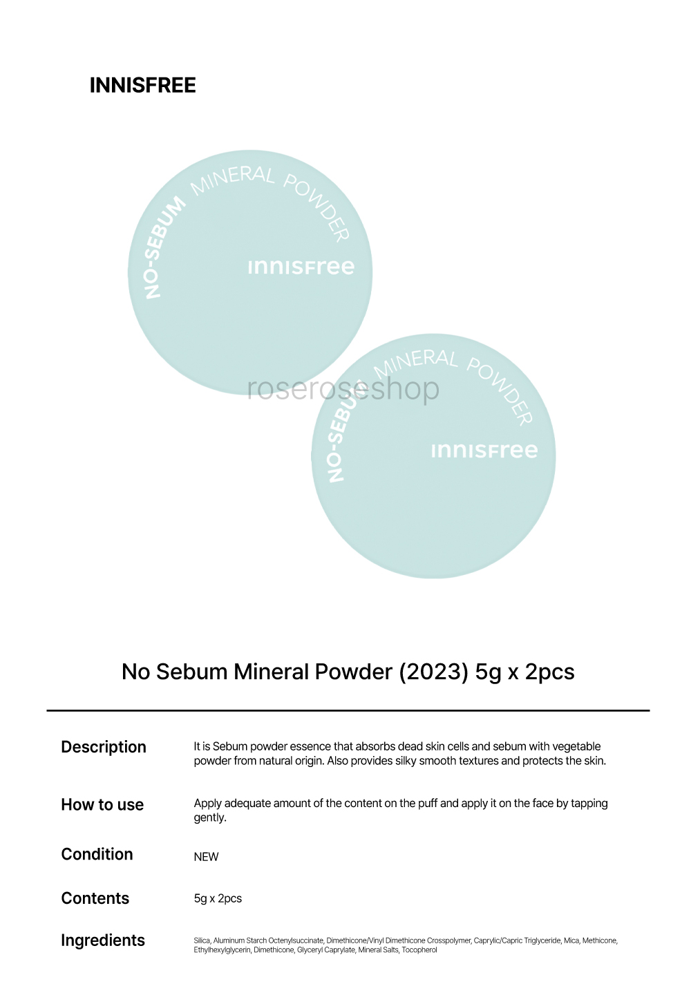 [INNISFREE] No Sebum Mineral Powder (2023) - 5g x 2pcs