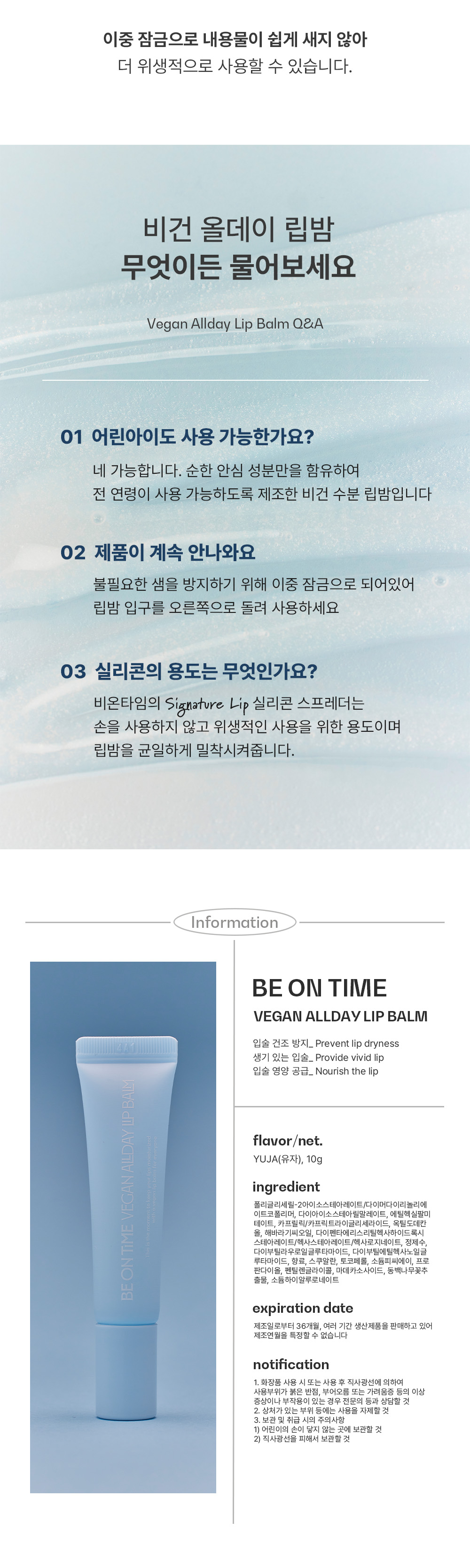 [BE ON TIME] Vegan Allday Lip Balm - 10g
