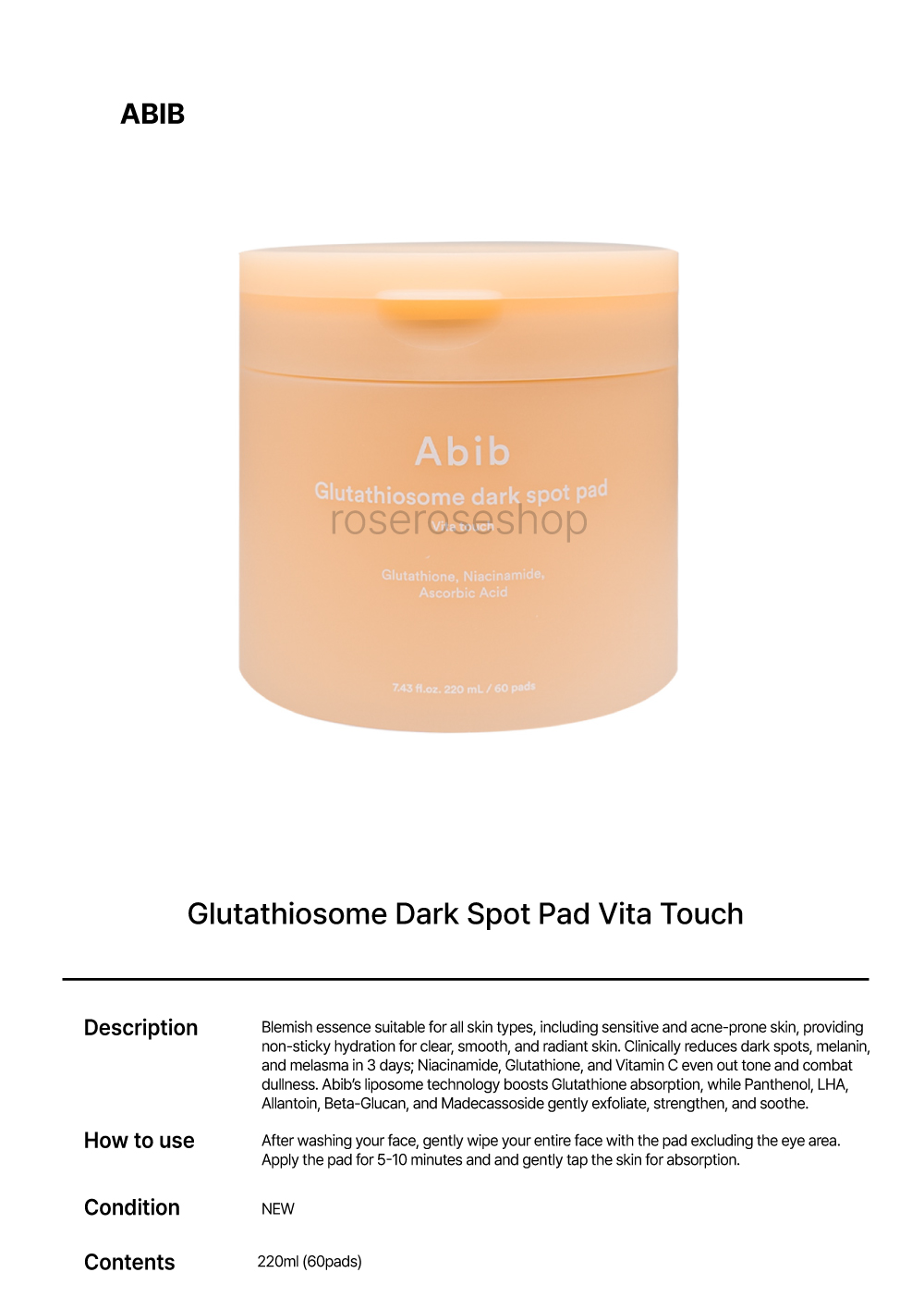 [ABIB] Glutathiosome Dark Spot Pad Vita Touch - 220ml (60pads)