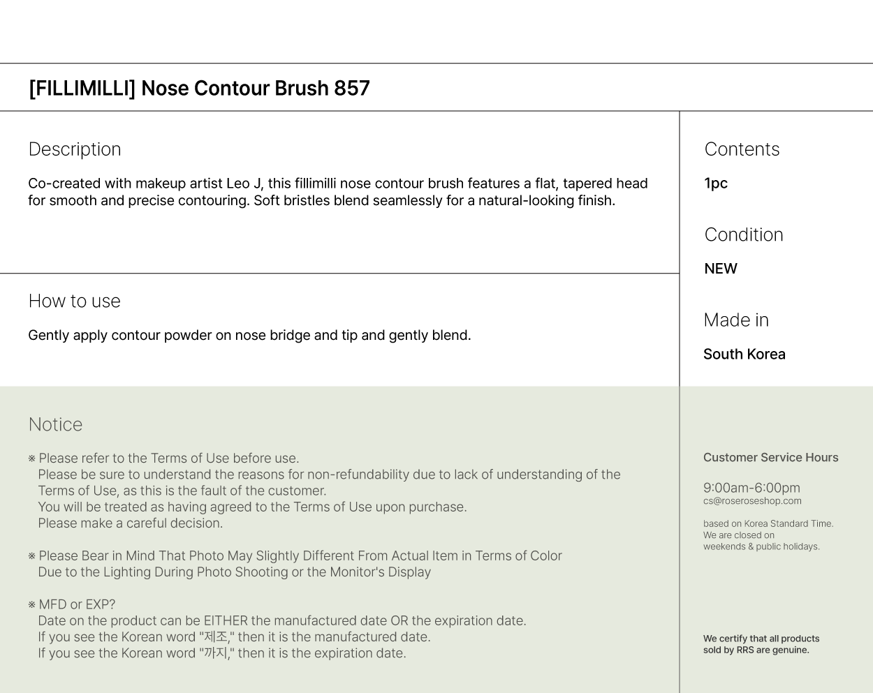 [FILLIMILLI] Nose Contour Brush 857 - 1pc