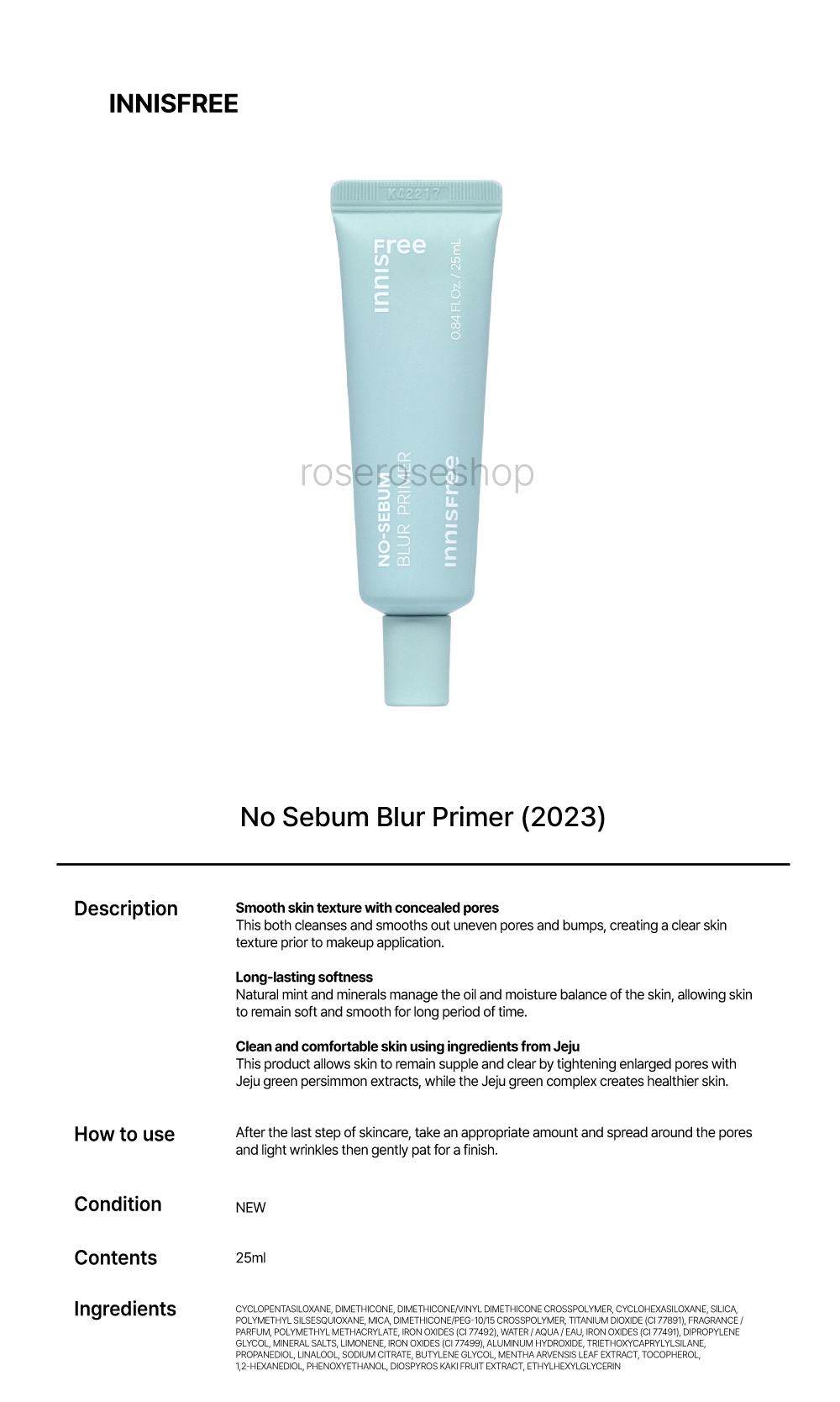 [INNISFREE] No Sebum Blur Primer (2023) - 25ml