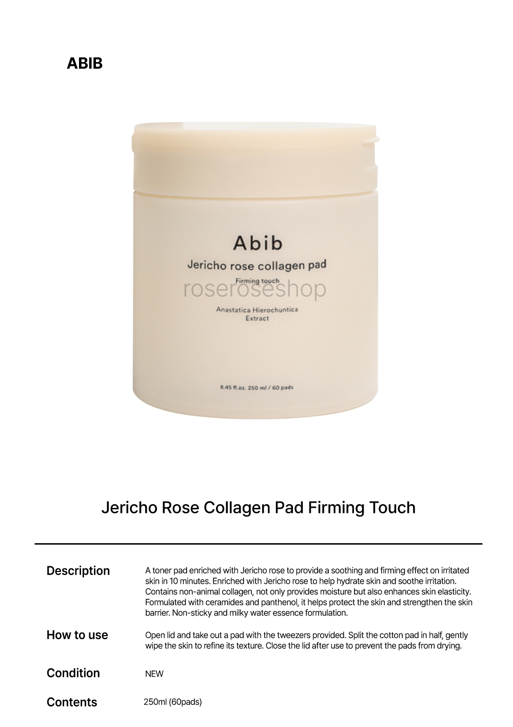 [ABIB] Jericho Rose Collagen Pad Firming Touch - 250ml (60pads)