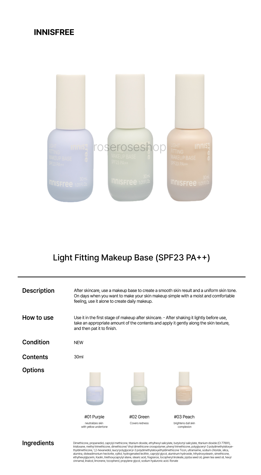 [INNISFREE] Light Fitting Makeup Base (SPF23 PA++) - 30ml