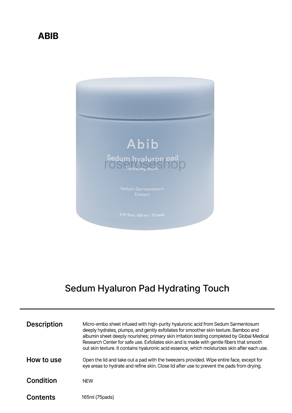 [ABIB] Sedum Hyaluron Pad Hydrating Touch - 165ml (75pads)