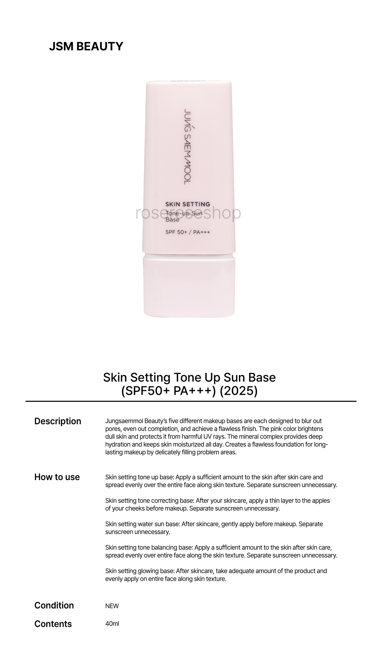 [JSM BEAUTY] Skin Setting Tone Up Sun Base - 40ml (SPF50+ PA+++)