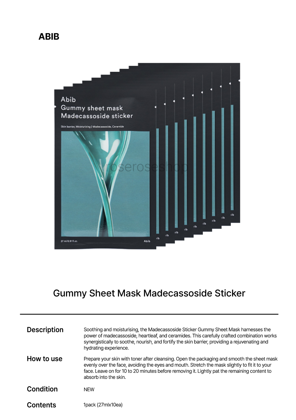 [ABIB] Gummy Sheet Mask Madecassoside Sticker - 1pack (27mlx10ea)