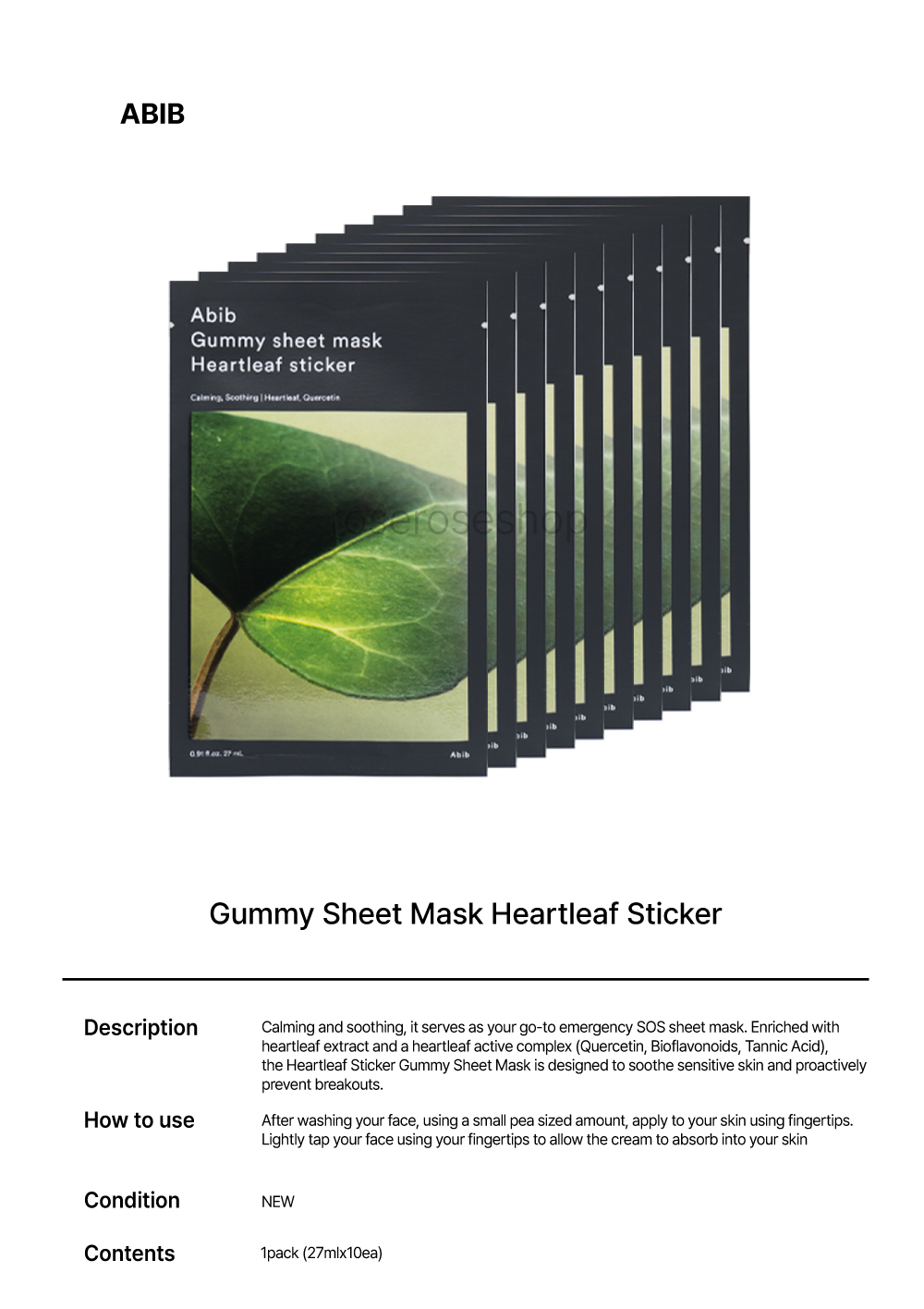[ABIB] Gummy Sheet Mask Heartleaf Sticker - 1pack (27mlx10ea)