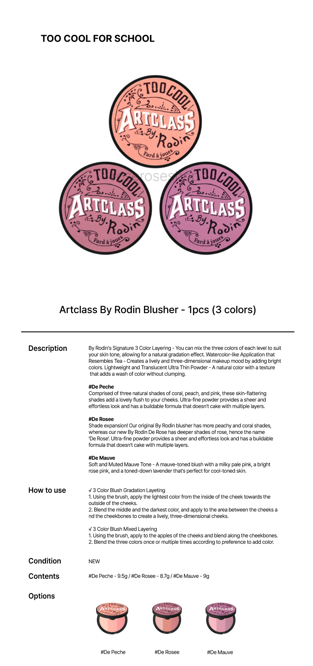 [TOO COOL FOR SCHOOL] Artclass By Rodin Blusher - 1pcs (3 colors)