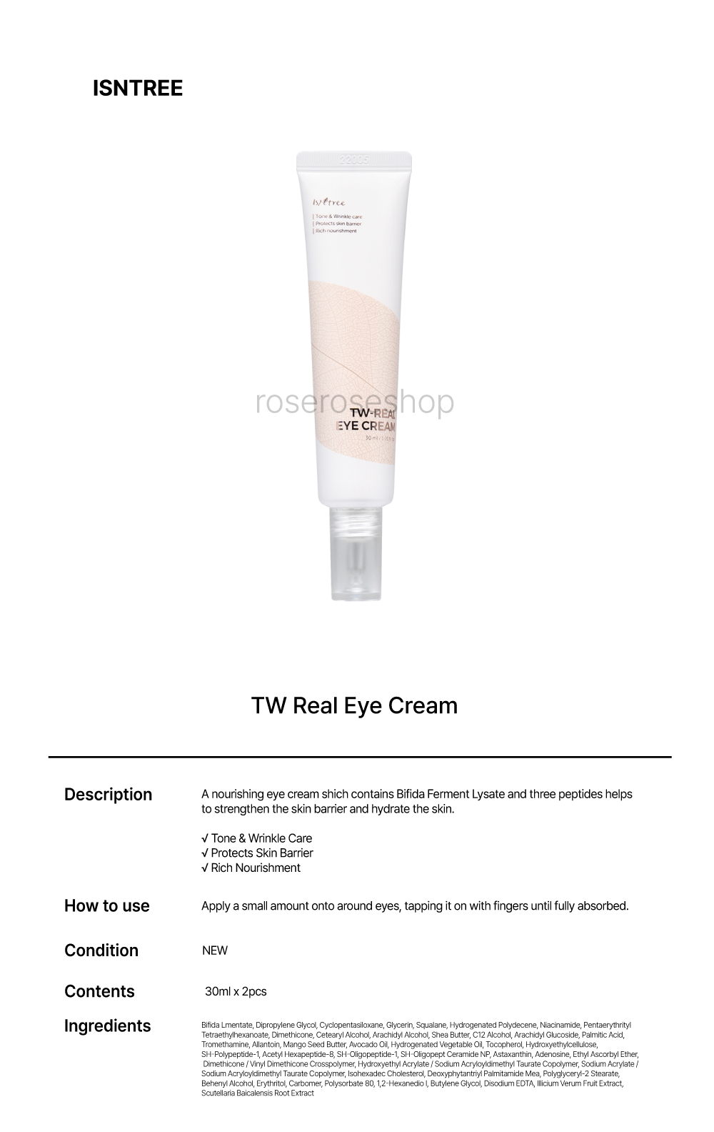 [ISNTREE] TW Real Eye Cream [EXP_2026-02-28] - 30ml x 2pcs