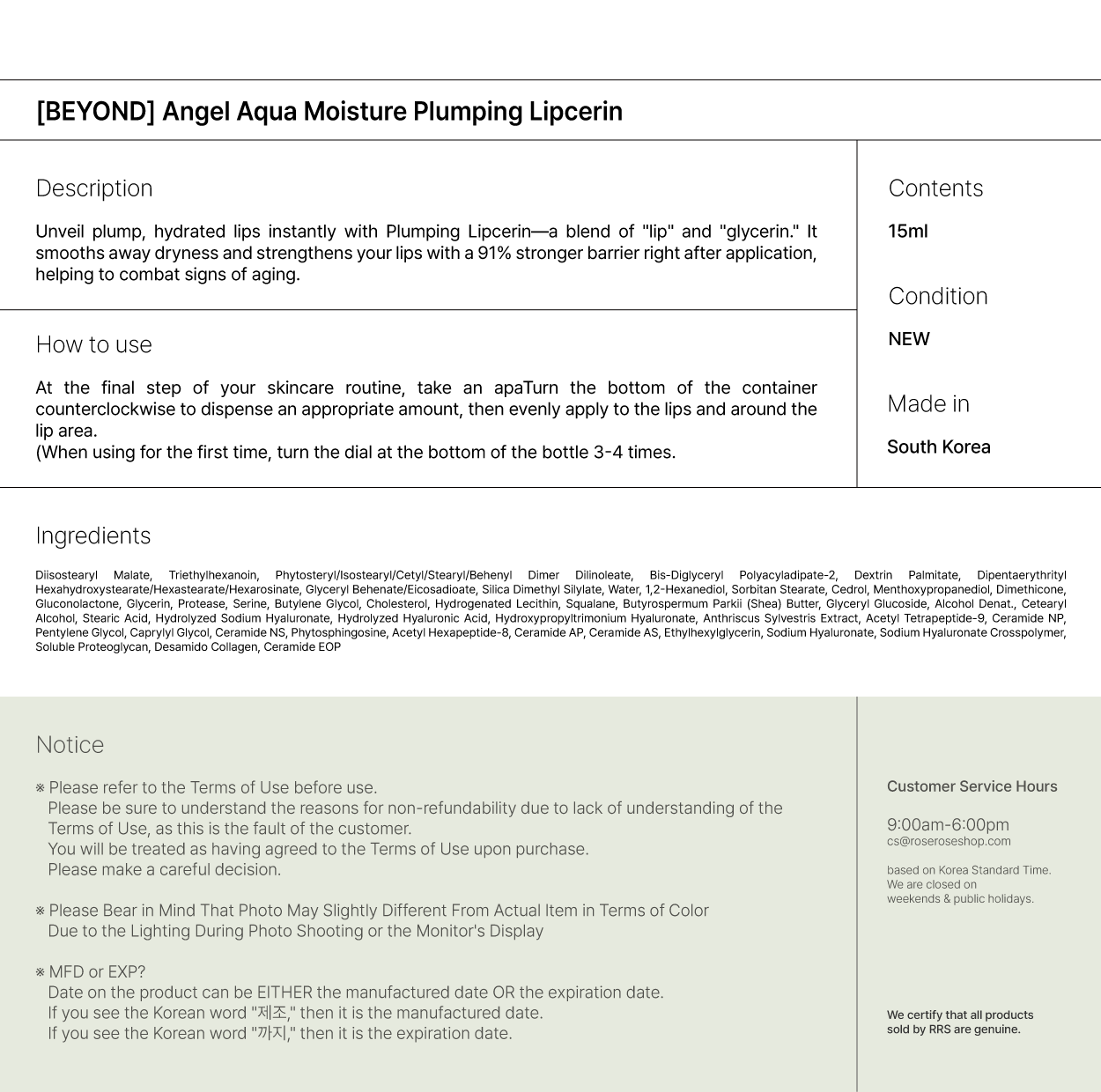 [BEYOND] Angel Aqua Moisture Plumping Lipcerin - 15ml
